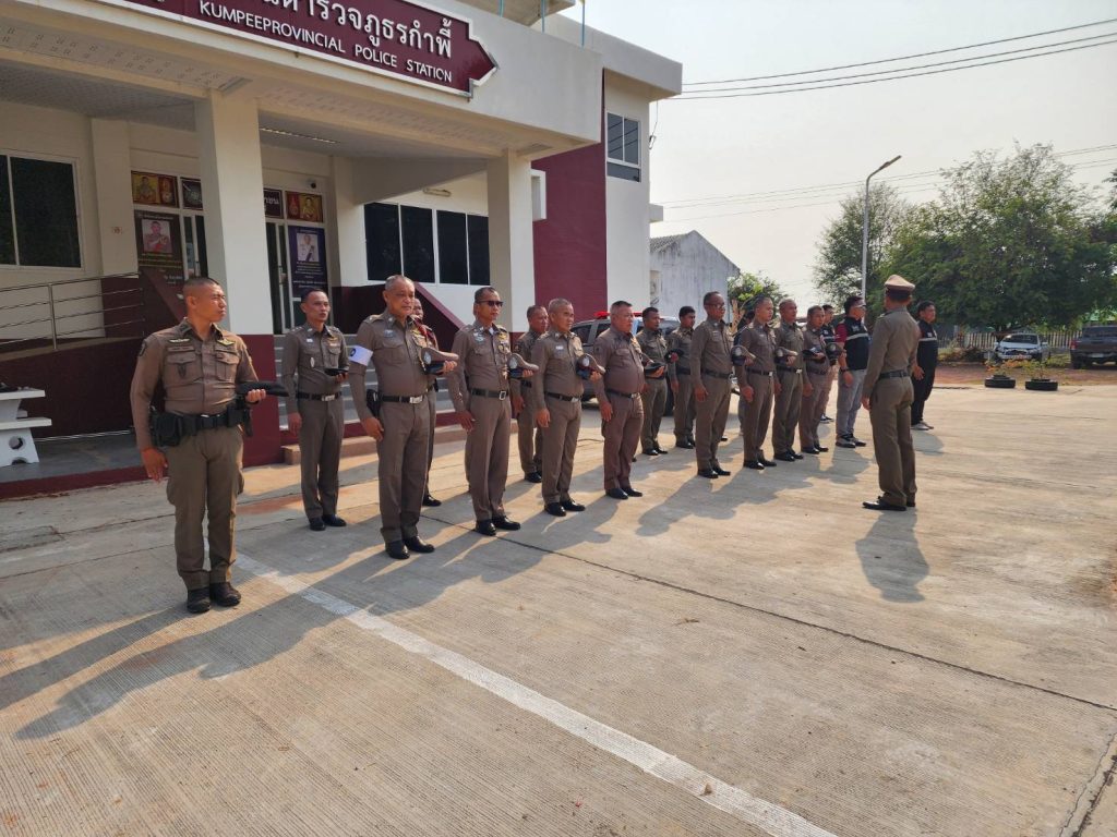 วันที่ 3 เม.ย. 2568 เวลา 08.30 น. พ.ต.ท.เสน่ห์ ดนตรี สว.สภ.กำพี้ พร้อมด้วยข้าราชการตำรวจ สภ.กำพี้ ร่วมเข้าแถวเคารพธงชาติ สวดมนต์ไหว้พระ กล่าวคำปฏิญาณ อุดมคติตำรวจ ตรวจเครื่องแต่งกาย ประชุมชี้แจงข้อราชการการปฏิบัติหน้าที่แต่ละสายงาน ให้ปฏิบัติหน้าที่ด้วยความเข้มแข็ง บริการประชาชนด้วยความยุติธรรม