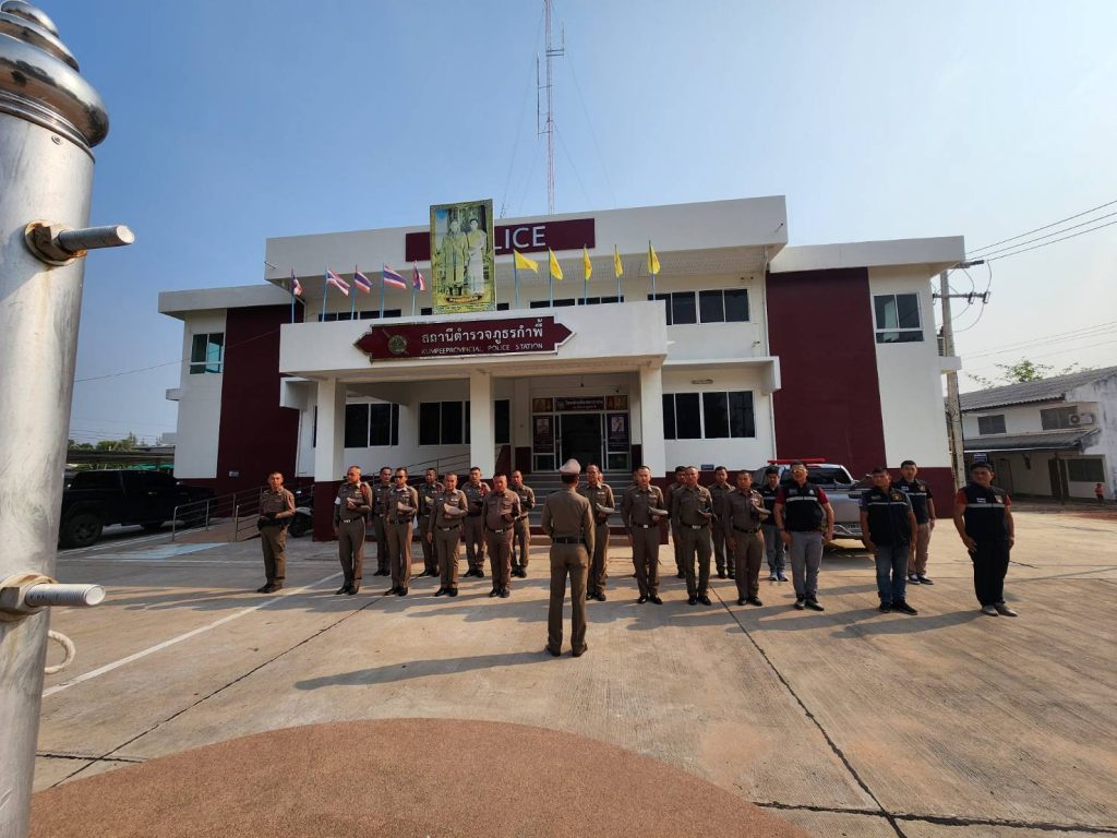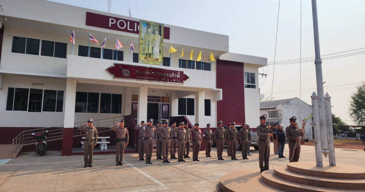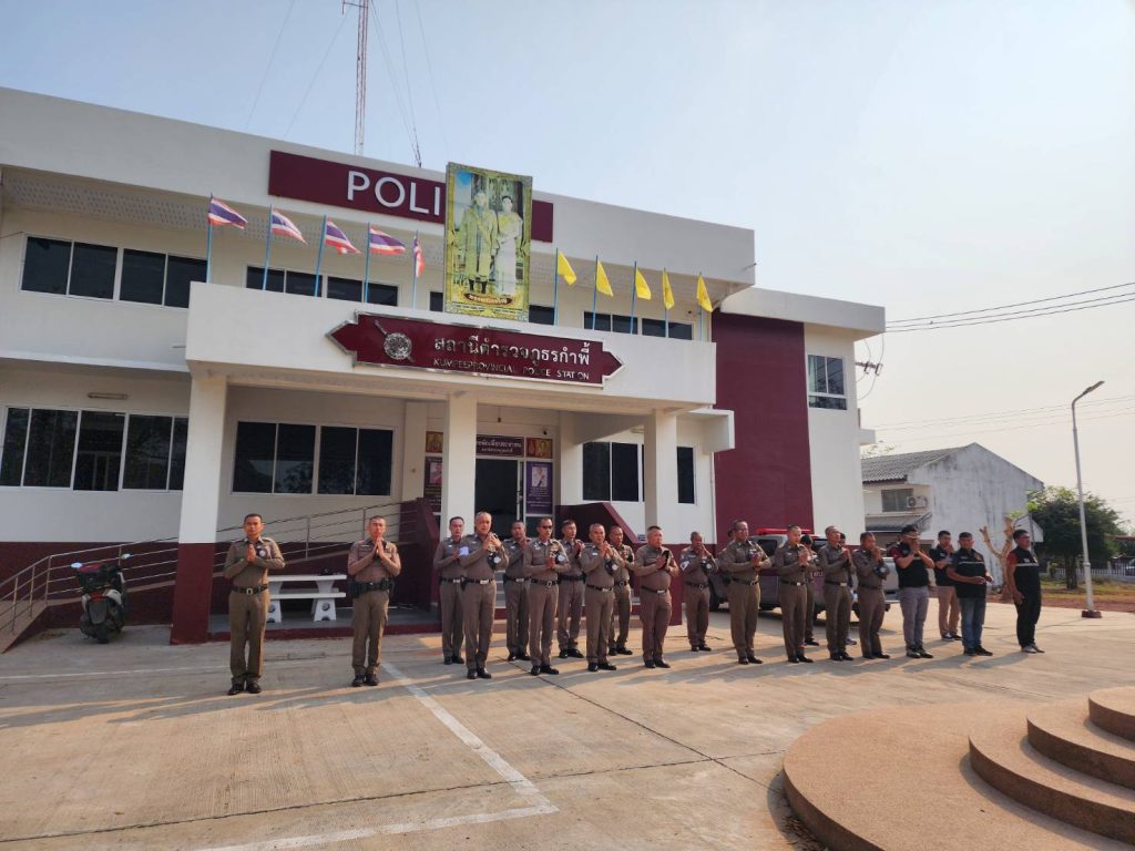 ข้าราชการตำรวจ สภ.กำพี้ ร่วมเข้าแถวเคารพธงชาติ สวดมนต์ไหว้พระ กล่าวคำปฏิญาณ อุดมคติตำรวจ