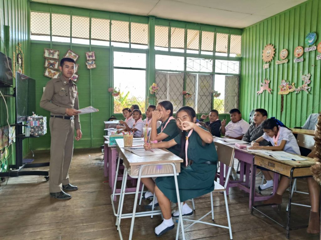 วันนี้ 27 ก.พ. 2568 เวลา 14.00-15.00 น. โดยการอำนวยการของ พ.ต.ท.สฤษดิ์ จุลนาค สว.สภ.กำพี้ ได้มอบหมายให้ ส.ต.อ.โชคอนันต์ ภูศรี ผบ.หมู่(สส.) สภ.กำพี้ ครูตำรวจแดร์ เข้าดำเนินการสอน นักเรียน ระดับชั้นป.5 และ ป.6 ของโรงเรียนบ้านหนองบัวโนนสว่าง ต.โนนราษี อ.บรบือ จ.มหาสารคาม ตามโครงการ การศึกษาเพื่อต่อต้านการใช้ยาเสพติดในเด็กนักเรียน หรือ D.a.r.e.(ประเทศไทย)ได้รับความร่วมมือจากคณะผู้บริหาร ครู และนักเรียนเป็นอย่างดี