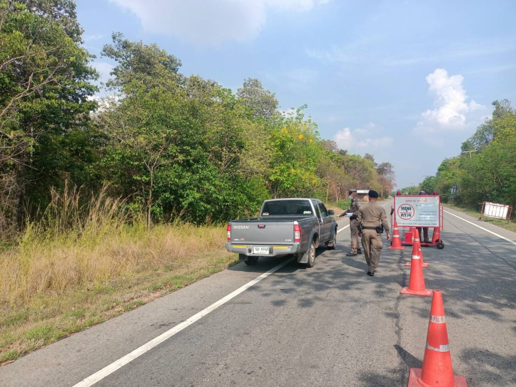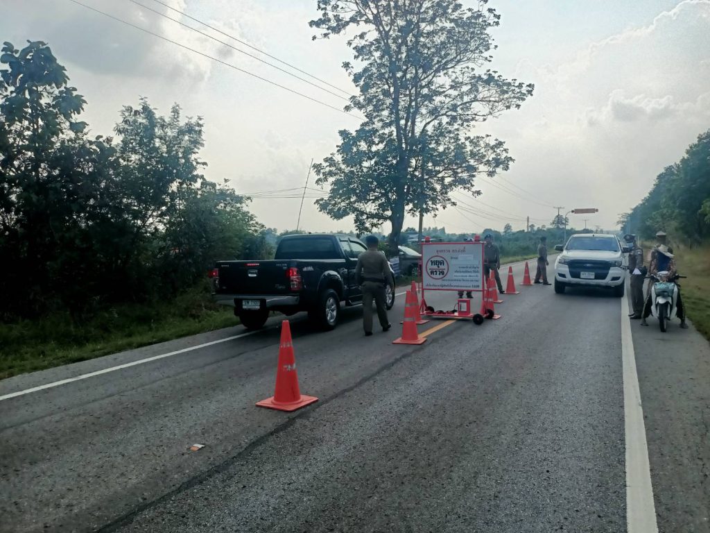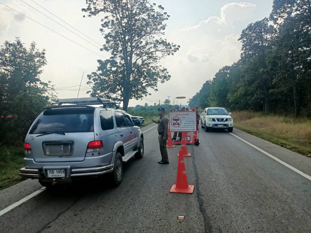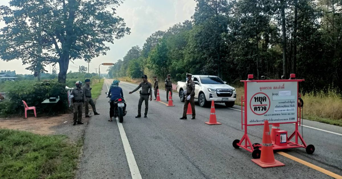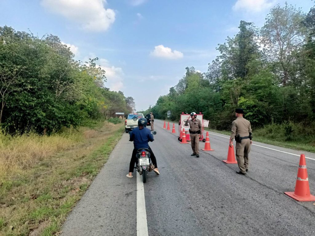 ตั้งจุดกวดขันวินัยจราจร บนถนน มค.3002 บริเวณเส้นทางบ้านผักหวาน ต.โนนราษี อ.บรบือ จ.มหาสารคาม