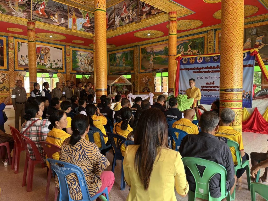 วันที่ ๑๐ มิ.ย. ๒๕๖๗ เวลา ๐๙.๐๐-๑๒.๐๐ น. ณ ศาลาการเปรียญวัดสีมาวดี บ้านเป้า หมู่ ๕, ๑๕ ต.กำพี้ อ.บรบือ จ.มหาสารคาม พ.ต.อ.ณฤทธิ์ นามมาวงษ์ ผกก.(สอบสวน)ฯ รรท.สว.สภ.กำพี้ พร้อมข้าราชตำรวจ สภ.กำพี้ ทุกนาย ได้เข้าร่วมพิธีเปิดโครงการชุมชนบำบัดอย่างยั่งยืนในพื้นที่แพร่ระบาดยาเสพติดฯ โดยมี