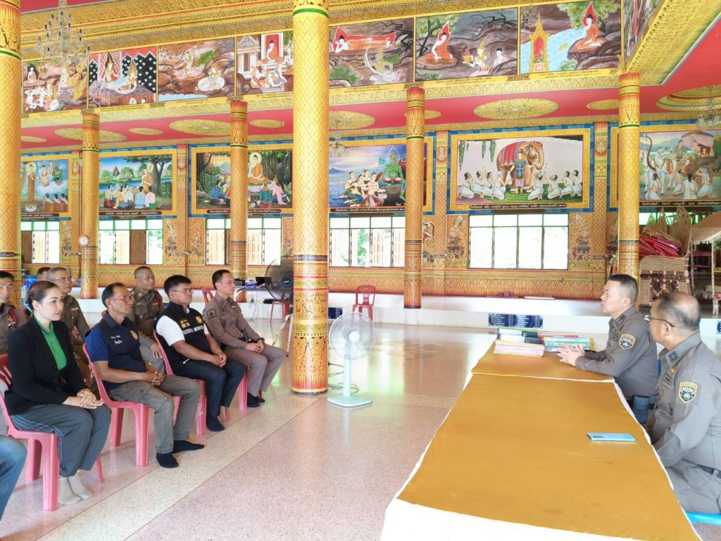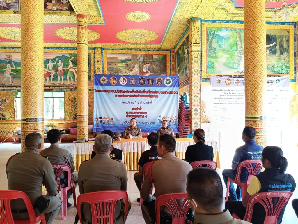 วันที่ ๓ ก.ค.๒๕๖๗ เวลา ๑๔.๐๐ น. พ.ต.อ.ธวัชชัย สัตยพัฒน์ รอง ผบก.ภ.จว.มหาสารคาม ตรวจเยี่ยมโครงการชุมชนบำบัดอย่างยั่งยืน ในพื้นที่แพร่ระบาดยาเสพติด ตามนโยบายเร่งด่วนของรัฐบาล ประจำปี ๒๕๖๗ ณ บ้านเป้า หมู่ ๕ ต.กำพี้ อ.บรบือ จ.มหาสารคาม และได้ให้ความรู้เกี่ยวกับปัญหายาเสพติดในสถานการณ์ปัจจุบัน ๑. ปัญหาจากการเสพยาเสพติด, โทษของยาเสพติด, ปัญหาการลักทรัพย์, ปัญหาการมั่วสุมของกลุ่มวัยรุ่น ๒.ปัญหาบุคคลวิกลจริต จากการใช้ยาเสพติด, การอยู่ร่วมกันในสังคม โดยมี พ.ต.อ.ณฤทธิ์ นามมาวงษ์ ผกก.(สอบสวน)ฯ รรท.สว.สภ.กำพี้ พร้อมด้วยข้าราชการตำรวจชุดชุมชนยั่งยืน,กำนันตำบลกำพี้,ผู้นำชุมชนบ้านเป้า หมู่ ๕ ,๑๕ ร่วมให้การต้อนรับ