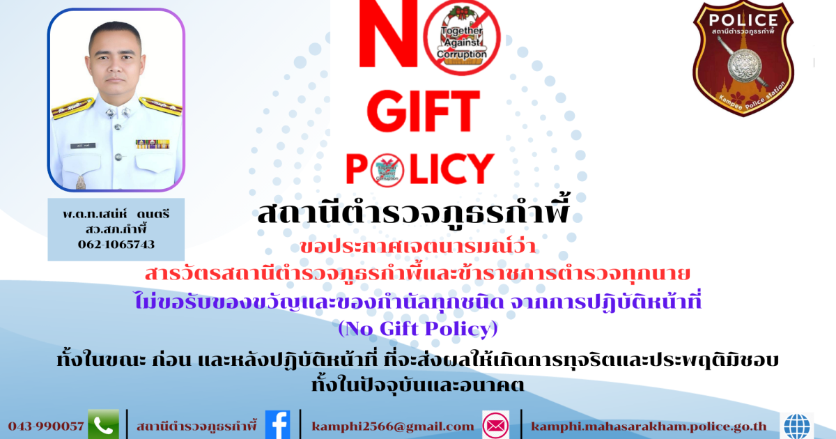 วันที่ 12 มีนาคม 2568 เวลา 10.00 น. พ.ต.ท.เสน่ห์ ดนตรี สว.สภ.กำพี้ ได้มอบนโยบายเพื่อให้การดำเนินงานของหน่วยงานปลอดจากการทุจริตและการรับสินบนในทุก รูปแบบ หน่วยงานจึงกำหนด นโยบายต่อต้านการรับสินบน ( Anti– bribery Policy) ดังต่อไปนี้: