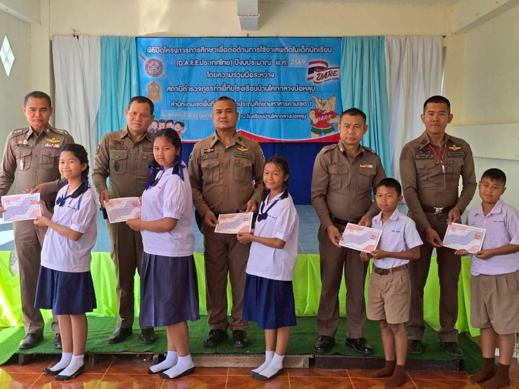 โครงการการศึกษาเพื่อต่อต้านการใช้ยาเสพติดในเด็กนักเรียน ( D.A.R.E. ประเทศไทย ) ให้กับนักเรียนชั้น ป.5 – ป.6 ที่จบหลักสูตรโครงการฯ ประจำปีการศึกษาที่ 2/2568 ณ โรงเรียนบ้านโคกกลางบ่อหลุบ ต.โนนราษี อ.บรบือ จ.มหาสารคาม