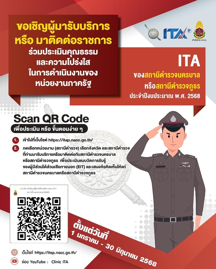 สถานีตำรวจภูธรกำพี้ ขอเชิญชวนผู้ที่มารับบริการ/มาติดต่อสถานีตำรวจ ร่วมประเมินแบบวัดการรับรู้ ของผู้มีส่วนได้ส่วนเสียภายนอก (External Integrity and Transparency Assessment : EIT) สำหรับนำไปพัฒนาปรับปรุงการให้บริการของสถานีตำรวจ