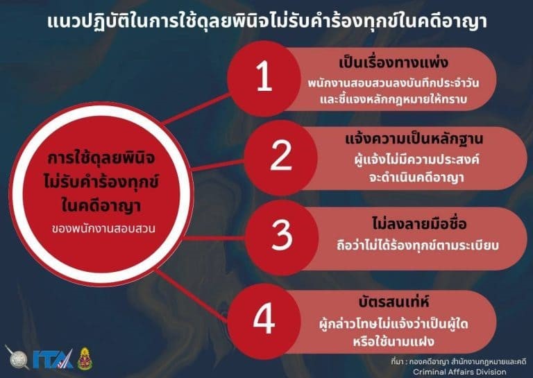 - แนวปฏิบัติในการใช้ดุลยพินิจไม่รับคำร้องทุกข์ในคดีอาญา